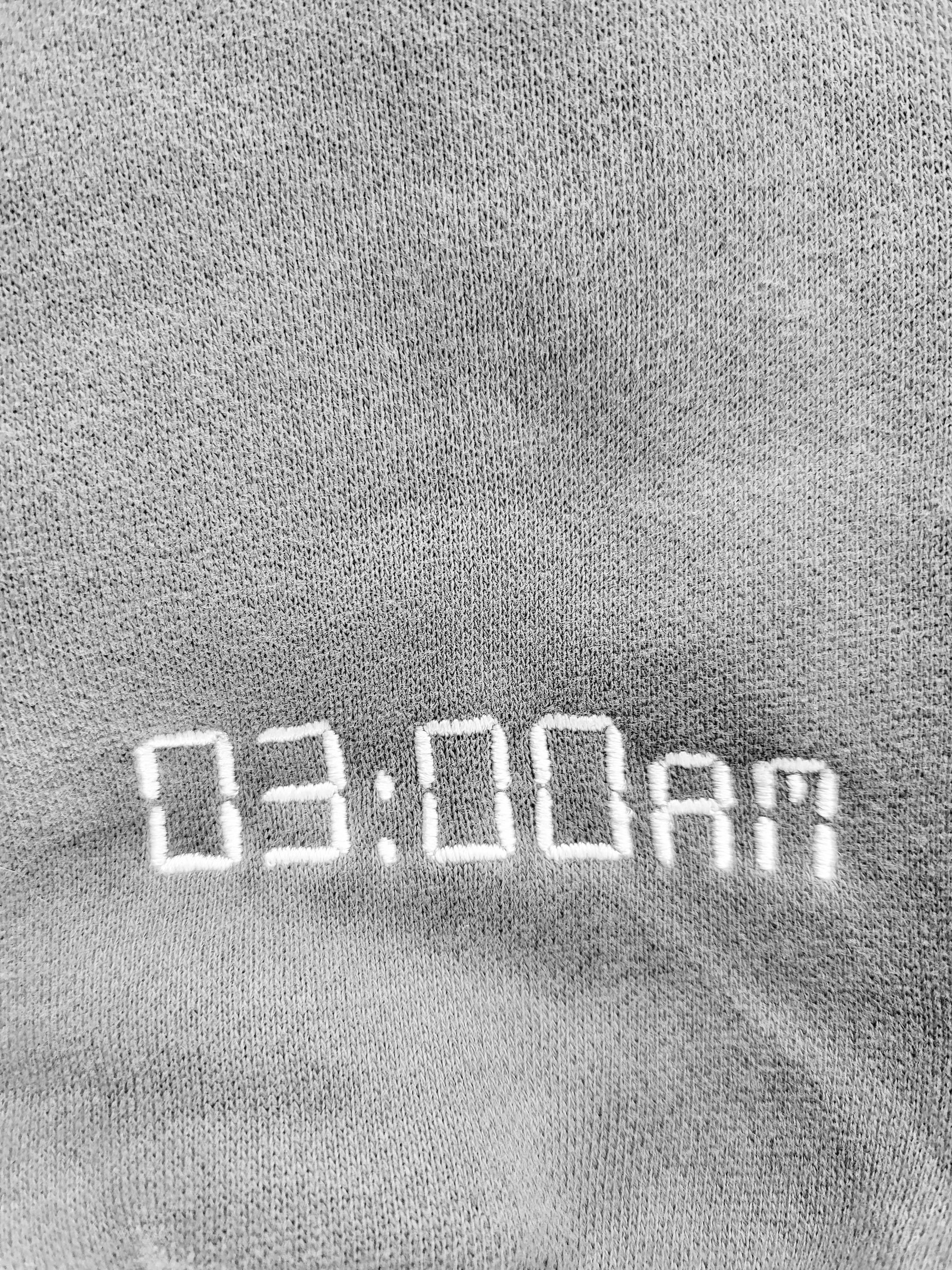 Embroidered chest logo, muted arm design to represent those 03:00am moments the world does not see. Large back design, incorporating a heartbeat line - for those showing up daily even when you don't feel like it.